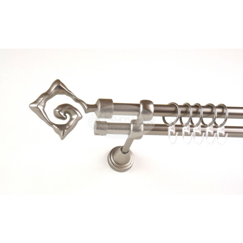 A WASHINGTON 120 cm-es nikkel-matt színű 2 rudas fém karnis szett tartalma: 2 db 120 cm-es nikkel-matt színű 16 mm átmérőjű fém karnisrúd 2 db Washington típusú nikkel-matt színű fém karnis végzáró 2 db Kansas típusú, kupak formájú fém karnis végzáró 2 d