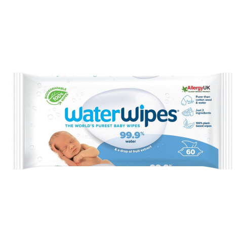WATERWIPES Nedves törlőkendők, műanyagmentes 60 db tisztító- és takarítószer, higiénia termékleírás