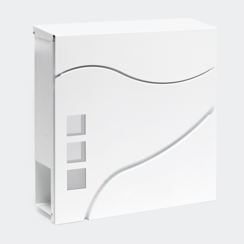 Design postaláda horganyzott acélból, porszórt felülettel, időtlenül elegáns megjelenésben. A postaláda nagyméretű levélnyílással rendelkezik, így nagyobb méretű postai küldemények is bedobhatók, alul újságtartóval. A szerelési anyagokat a szállítási terj