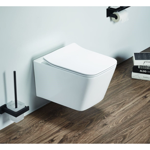 Az Infinitio sorozatban olyan pultos mosdókat és WC-ket találhat, amelyek biztosan megragadják a tekintetét, mint például ez az elegáns, szögletes kialakítású, falra akasztható WC. Softclose ülést tartalmaz. A WC rejtett szerelvénnyel és hátsó hulladékkal rendelkezik, öblítőáramkör nélkül. Öblítési térfogat 3/4,5 liter.