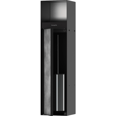 WC kefe tartóval, matt fekete színben. Ennek a Hansgrohe fürdőszobai kiegészítőnek a szélessége 24 cm, és fémből, műanyagból készült.