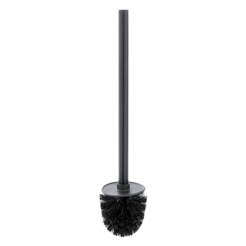 Csere WC-kefe. Sörték fekete műanyagból. Kefe nyele rozsdamentes acél fekete matt. Magasság 35,7 cm, szélesség 7,8 cm.
