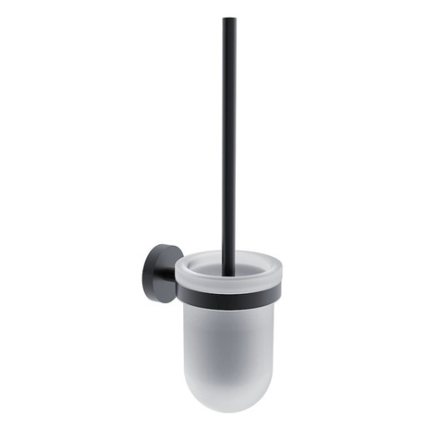 WC-kefe fekete színben. Ennek a Nimco fürdőszobai tartozéknak a szélessége 9,8 cm, és fémből, üvegből készült. Ragasztással és fúrással szerelhető.