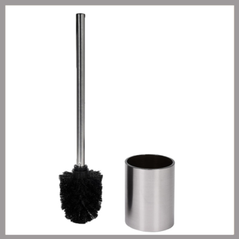 WC kefe tárolóedénnyel rozsdamentes acél TO-69354Az kefe átmérője 7 cm, hossza 38 cm.Acél, nikkelezett felülettel.Az elegáns termékcsalád gyönyörűen illeszkedik a szaniter szerelvényekhez, amelyek bármilyen belső kialakításhoz illeszkednek.