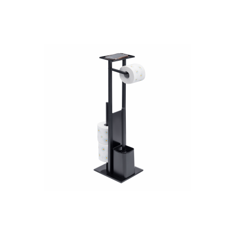 WC papír/kefe tartó 68 cm fekete porfestett fém + mûanyag 41472 - Anyaga: fekete pofestett fém + mûanyag - Méretei: 18 cm * 21 cm * 68 cm - Tetején mobiltelefon tartóval A papírok nem tartozékai!