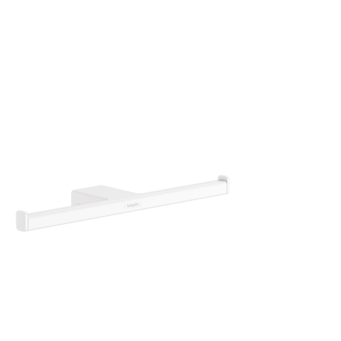 Wc-papír tartó fehér matt színben színű. A Hansgrohe márkájú fürdőszobai kiegészítő szélessége 30 cm alapanyaga fém. Szerelési mód fúrással.