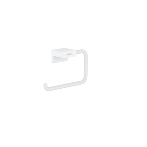 Wc-papír tartó fehér matt színben színű. A Hansgrohe márkájú fürdőszobai kiegészítő szélessége 14,1 cm alapanyaga fém. Szerelési mód fúrással.