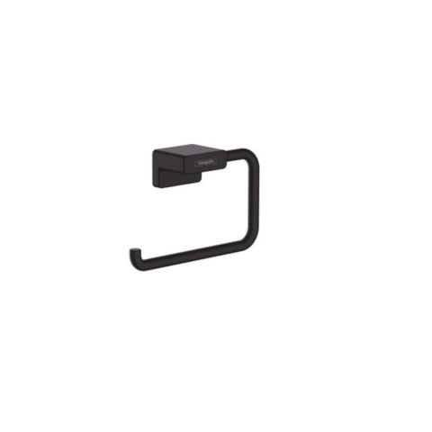 Wc-papír tartó fekete matt színben színű. A Hansgrohe márkájú fürdőszobai kiegészítő szélessége 14,1 cm alapanyaga fém. Szerelési mód fúrással.