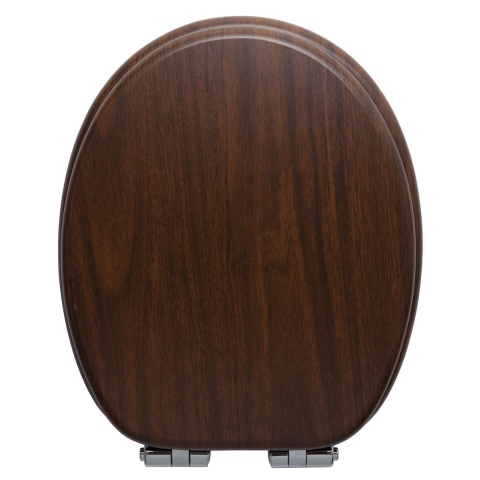 WC ülőke MDF-ből softclose (lassú záródás) diófa kivitelben az ülőke hossza 43,5 cm. Pánty sárgarézből. a rögzítés közti távolság 11-20 cm.