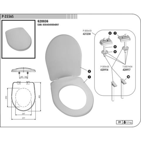 WC ülőke hőre lágyuló műanyagból fehér színben az ülőke hossza 45,5 cm. Pánty műanyagból. a rögzítés közti távolság 14 cm.