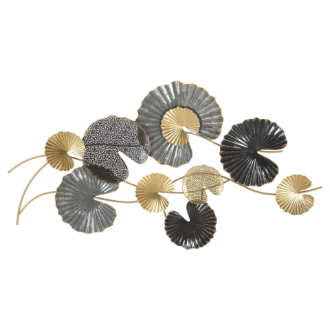 Fekete és Arany Lótusz Virág Vas Falpanel - Elegáns 3D Dekoráció ✨ Ez a gyönyörű fekete és arany színű vas falpanel a természet ihlette lótuszvirág mintájával egyedi és elegáns dísze lehet otthonodnak. A 3D-s kialakítás kiemeli a fal síkjából, így ig...