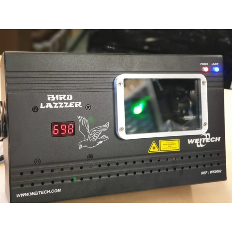 Weitech Bird Lazzzer elektromos madárriasztó készülék Speciális madárriasztó készülék a Weitech -től. A készülék egy folyamatosan pásztázó lézernyalábbal riasztja a madarakat a védeni kívánt területen. A nyalábokat vízszintes és függőleges síkokban folya