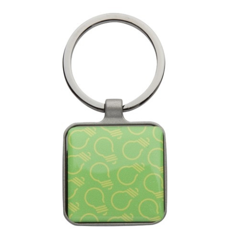 Fém, négyzet alakú kulcstartó, mindkét oldalon fényes felületű fém betéttel. Fekete díszdobozban szállítjuk.