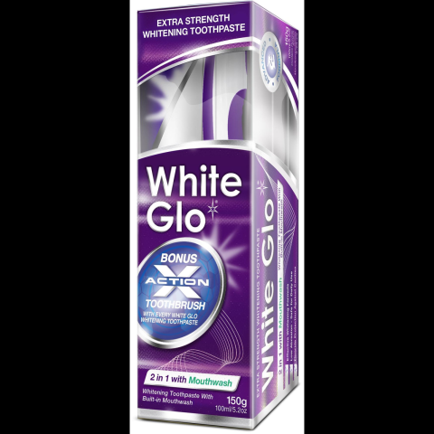 WHITE GLO 2 in 1 szájvízzel 100 ml + kefe + fogkefe (9319871000646)