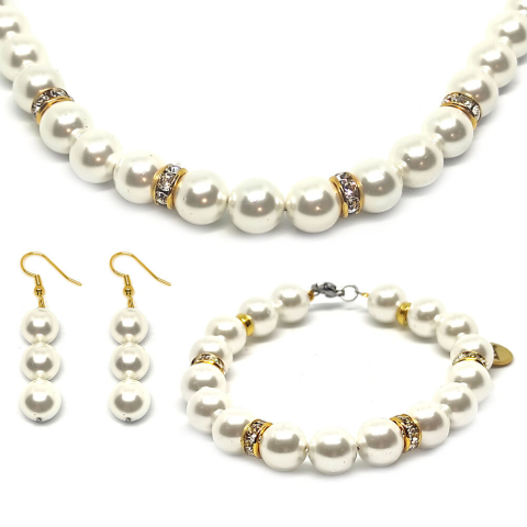 1 kép White Sparkle – mesterséges gyöngy exkluzív ékszerszett (nyaklánc + karkötő + fülbevaló) dobozban