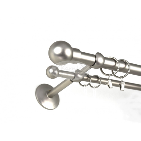 A WIEN nikkel-matt 2 rudas karnis szett tartalma: 1 db nikkel-matt színű 25 mm átmérőjű fém karnisrúd a kiválasztott hosszúságban 1 db nikkel-matt színű 16 mm átmérőjű fém karnisrúd a kiválasztott hosszúságban 2 db Wien típusú nikkel-matt fém végzáró 2 d