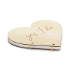 Wooden guest book in a heart shape with inscription ''Yes, I do'', contains 40 pages for writing, dimensions approx. 26.5 x 25 cm.