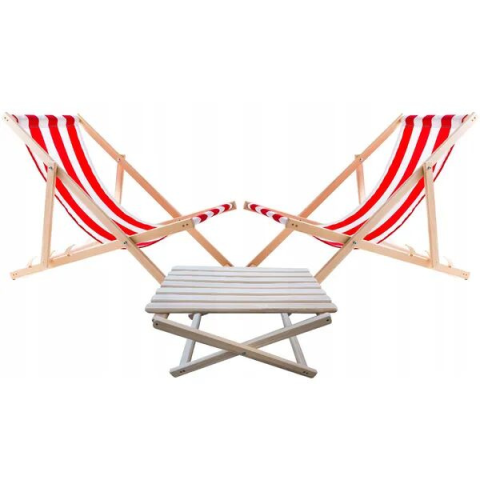 Teljes Woodok kerti napozóágy szett piros csíkos termékleírás