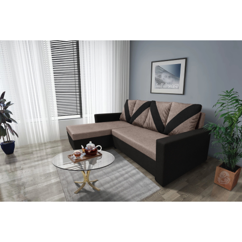 1 kép WOW sarokkanapé fekete – pasztell taupe szövet zseniális 3 változatban