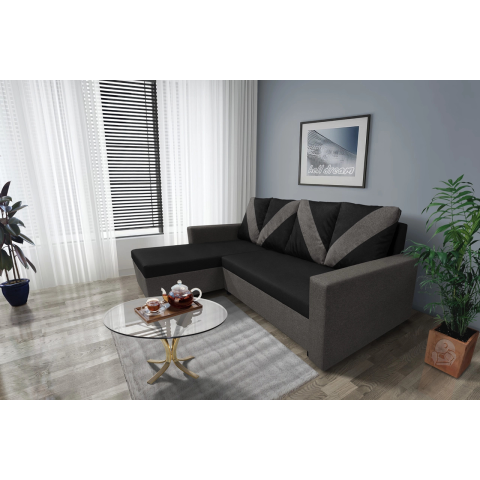 1 kép WOW sarokkanapé kvarcszürke – fekete szövet zseniális 3 változatban