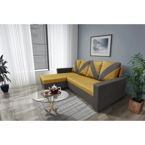 1 kép WOW sarokkanapé kvarcszürke – őszarany szövet zseniális 3 változatban