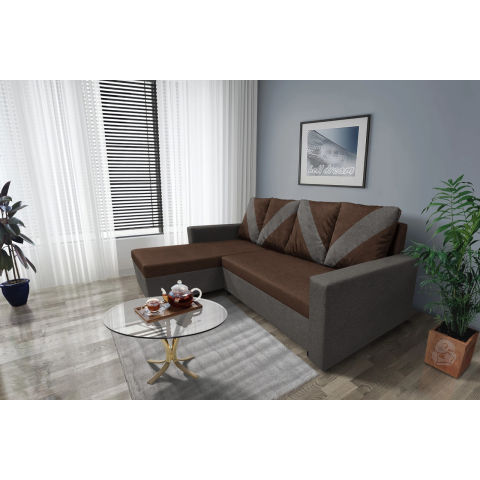 1 kép WOW sarokkanapé kvarcszürke – sötét mahagóni szövet zseniális 3 változatban