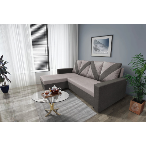1 kép WOW sarokkanapé kvarcszürke – szamárszürke szövet zseniális 3 változatban