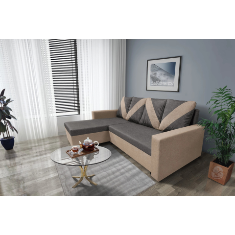 1 kép WOW sarokkanapé világos fahéj – kvarcszürke szövet zseniális 3 változatban