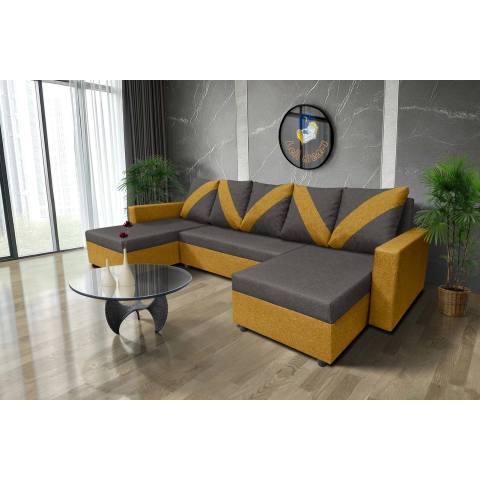 WOW U alakú sarokkanapé őszarany – kvarcszürke szövet zseniális 3 változatban bútor termékleírás