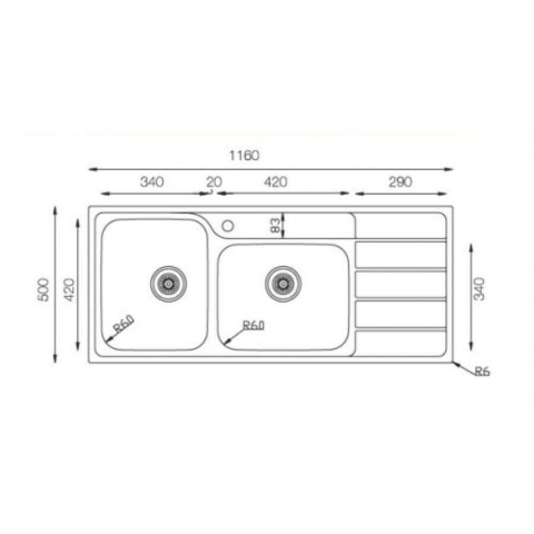 Dupla mosogató rozsdamentes acélból - 1160x500 mm 🍽️ Ez a tágas, dupla mosogató tökéletes választás modern konyhájába. Rozsdamentes acélból készült, strapabíró és könnyen tisztítható. Két medencével és praktikus csepegtetős tállal rendelkezik, így ké...
