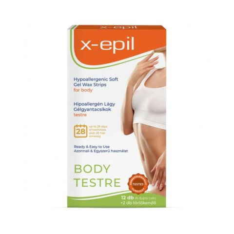 1 kép X-Epil Használatra kész hipoallergén gélgyantacsíkok testre - 12db