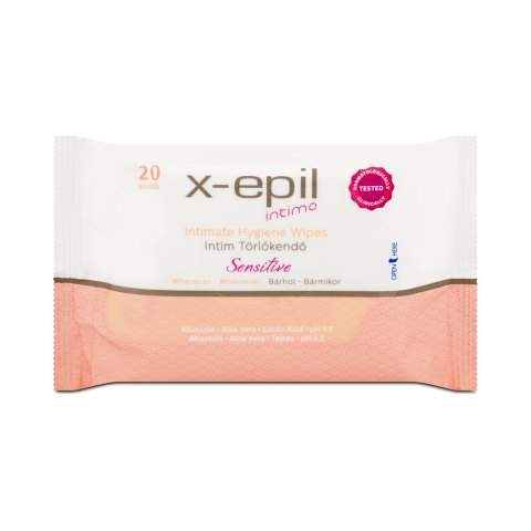 Az X- Epil Intimo Sensitive törlőkendő gondoskodik a friss és higiénikus, tiszta intim területekről. A termék kimondottan az érzékenyebb bőrűek számára lett kifejlesztve. A legtöbb irritációt okozó összetevőtől mentes (parabén, színezék, alkohol), e