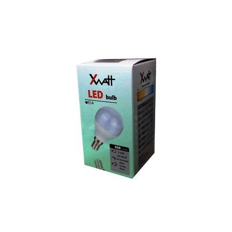 XWATT LED Kis gömb izzó 5W-os E14-es foglalattal XWLGE14/5W Energia osztály: A Foglalat: E14 Teljesítmény: 5W Fényáram: 450 Lumen Színhõmérséklet: 2700K (meleg fehér) Üzemidõ: 6000 óra