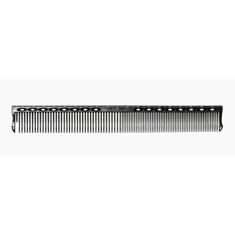 Professzionális hosszú carbon vágófésű. Mércés. Hullámos fog kialakítás. A fésű gerincén kialakított mérce pontosabb munkát tesz lehetővé. Ideális tanulásnál. A precíziós, szabadalmaztatott leválasztó fej, ezáltal, könnyebb, gyorsabb vékonyabb paneleket leválasztani. A fésűn lévő lyukak miatt könnyebb a fésű tartása, súlyelosztása. Természetes lágy tartás. Erős fogak. 220 C fok-ig hőálló. 200mm