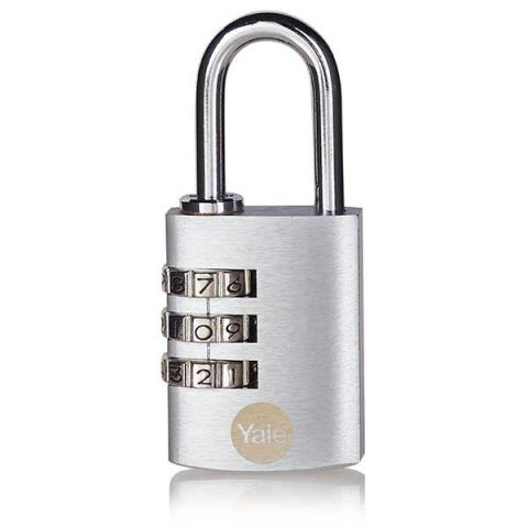 Yale-Y151B/30/125/1 krómozott számkombinációs lakat • krómozott réz lakattest• krómozott acél kengyel• 3 tárcsás számzár• átkódolható számkombináció• 1.000 kódvariáció• 96 órás korrózióállósági teszt• könnyű kezelhetőség