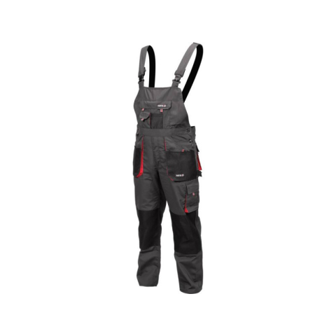 YATO Munkavédelmi kertésznadrág XL-es méret 11 zsebes Kantáros munkanadrág tizenegy zsebbel, hét zsebbel tépőzárral és speciális zsebekkel a térdvédők számára. A fő anyag pamut és poliészter megfelelő arányú keveréke. Ez a megoldás ötvözi mindkét anya