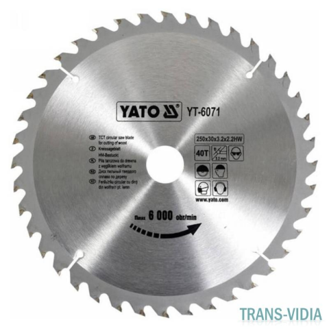 Yato YT-6071 fűrésztárcsa fához 250/30/40