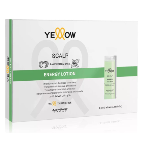 Yellow Scalp Energy hajhullás elleni lotion, 6x13 ml - Energia és erő koncentrátuma a legyengült, hajhullásra hajlamos hajra - Friss hatású formulája 100%-ban természetes eredetű és fenntartható, szennyeződésgátló hatású rambutánnal és bazsalikommal gaz