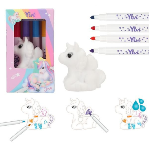 Fedezd fel a kreativitás világát az Ylvi A Te Színeződ Unikornissal! Fejleszd a művészi készségeidet a színezési élmény során. A puha, bolyhos unikornis figura többször is kifesthető a vidám, mosható filctollakkal. Éld át a szórakoz