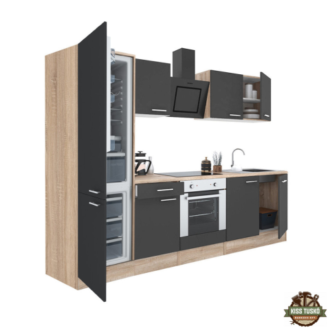 Yorki 270 Konyhabútor Szett: Komplett megoldás a konyhádba, sütővel és hűtővel! 🏡 A Yorki 270 konyhabútor egy komplett konyhai megoldás, amely tartalmazza a sütős alsószekrényt és az alulfagyasztós hűtőszekrényt is. A sonoma tölgy korpusz és a selyem...