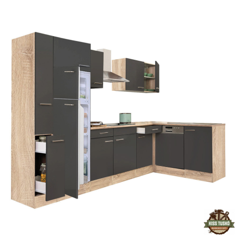 Yorki 310 sarok konyhabútor felülfagyasztós hűtős kivitelben Yorki 310 sarok konyhablokk sonoma tölgy korpusz, selyemfényű fehér fronttal. A tökéletes konyha megteremtője! Minőségi hazai gyártású moduláris konyhabútor, mely kielégíti bármely kedves vás