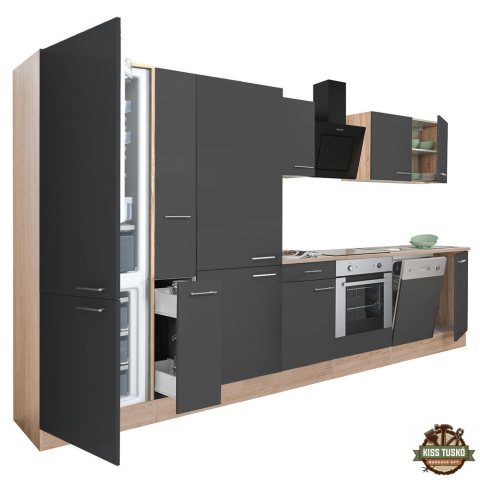 Yorki 370 konyhabútor alsó sütős, alulfagyasztós hűtős kivitelben Yorki 370 konyhablokk tögy korpusz,selyemfényű antracit fronttal. A tökéletes konyha megteremtője! Minőségi hazai gyártású moduláris konyhabútor, mely kielégíti bármely kedves vásárló ig