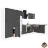 Yorki 370 sarok konyhabútor alsó sütős felülfagyasztós hűtős kivitelben Yorki 370 sarok konyhablokk fehér korpusz, selyemfényű antracit fronttal. A tökéletes konyha megteremtője! Minőségi hazai gyártású moduláris konyhabútor, mely kielégíti bármely k...