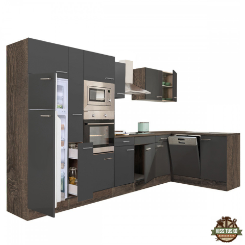 Yorki 370 Sarok Konyhabútor Hűtővel - Modern és Praktikus Megoldás 🍽️ A Yorki 370 sarok konyhabútor egy komplett és stílusos megoldás konyhádba, beépített felülfagyasztós hűtőszekrénnyel. A fehér korpusz és selyemfényű antracit front kombinációja eleg...