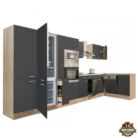 Yorki 430 Sarok Konyhabútor Alulfagyasztós Hűtővel - Modern és Praktikus Konyha 🏡 A Yorki 430 sarok konyhabútor ideális választás, ha egy modern, praktikus és stílusos konyhát szeretnél. A sonoma tölgy korpusz és a selyemfényű antracit front kombinác...