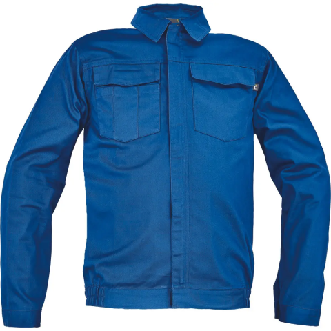 ZARAGOZA kabát royal kék 64 • férfi munkakabát • cipzáras, tépőzáras hajtókával • 2 nagy hajtókás mellkasi zseb • rugalmas oldalsó betétek a kabát alján • tépőzáras mandzsetta • 65% PES/35% pamut, 195 g/m2