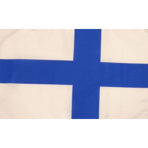 Finnország zászlaja poliészter anyagból Ez a lobogó 1918 óta képviseli a Finnországot. A kék szín az ország sok ezer tavát és tiszta egét jelképezi, a fehér pedig a hóval borított tájat és a fehér éjszakákat. A finn törvények szerint a zászló nem lehet piszkos vagy szakadt, megjelenésén változtatni tilos, mosás után csak beltérben szárítható. Tiszteletet kell adni neki, nem temethető el, és funkciójától eltérő célokra nem használható. Hol használha