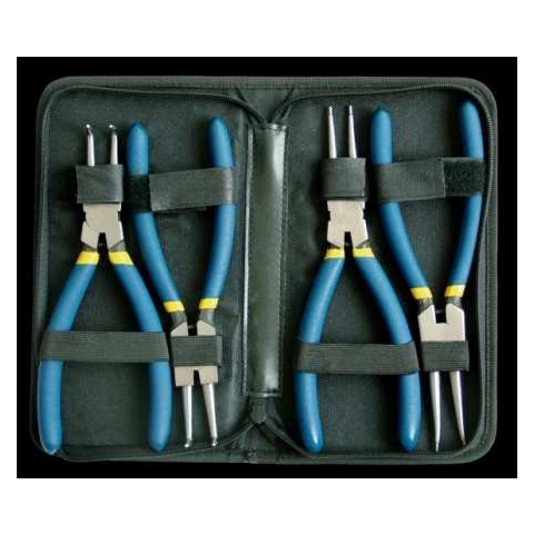 BGS rögzítőgyűrű fogó készlet, 225 mm, 4 db. - Egyenes és hajlított - Minden külső és belső zeeger gyűrűhöz - Érdesített műanyag nyél - Hegy átmérő: Ø: 2,4 mm - Max. nyitás - Külső Seeger-gyűrű fogók (abgewinkel) 36 mm - Külső Seeger-gyűrű fogók (eg