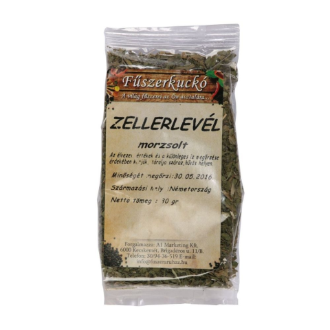 A zellerlevél kedvelt fűszer a magyar és a mediterrán konyhákban is. Most a zellerlevél szárított, morzsolt változatát kínáljuk Önnek. A szárított zellerlevél földimogyorót, diót, zellert, mustármagot és szezámmagot is feldolgozó üzemben került csomag