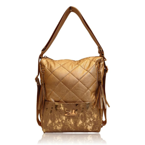 1 kép Zellia női válltáska/hátizsáká alakítható 22199 arany – steppelt – D2 –